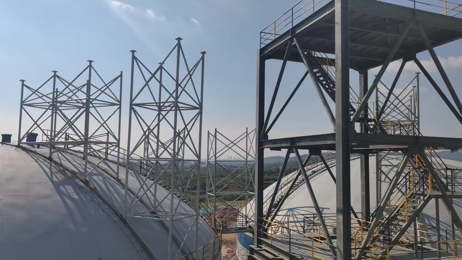 钢廊道生产线,高度随山体走向而定,用钢量约1200吨,钢架全部于施工现场进行制作、安装。